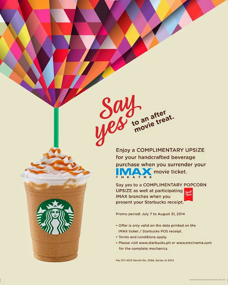 - And when you present your Starbucks receipt in Snack Time branches in IMAX, you will get a complimentary upsize of your popcorn!