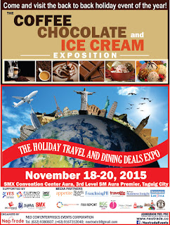 They have saved the best for last as NEO-CCM ENT EVENTS CORPORATION brings you the Holiday Travel and Dining Deals Expo which will be happening simultaneously with the Coffee, Chocolate, and Ice Cream Expo, on November 18-20, 2015, at the SMX Convention Center, SM Aura Premiere, Taguig City.